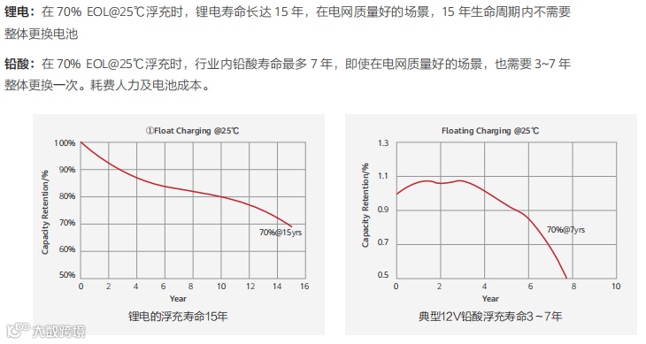 锂电和铅酸电池的浮充寿命曲线