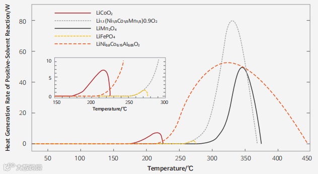 磷酸铁锂热稳定性高、产热速率慢,产热少。