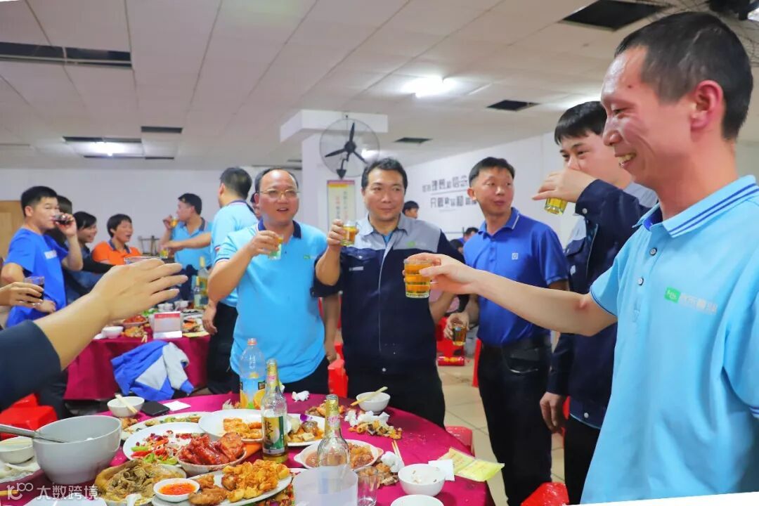 麦董携公司领导向在场的员工敬酒,感谢这一年来所有人员的付出,并祝大家吃好、喝好,来年万事大吉!