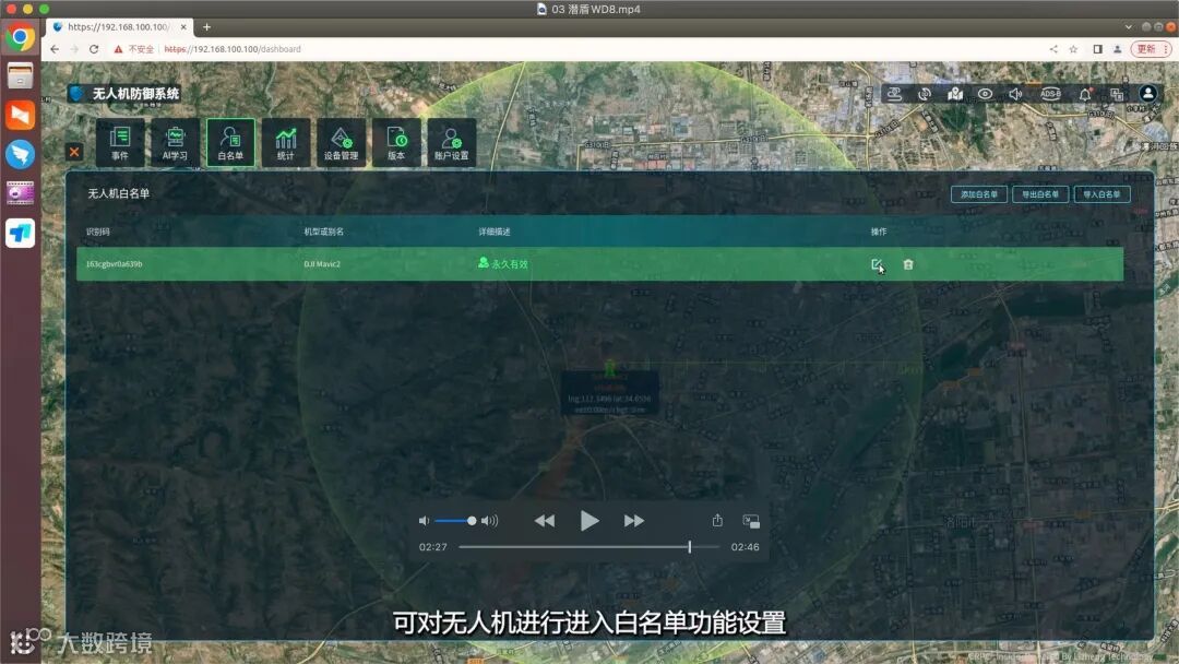 点击“白名单”按钮,可对无人机进行进入白名单功能设置