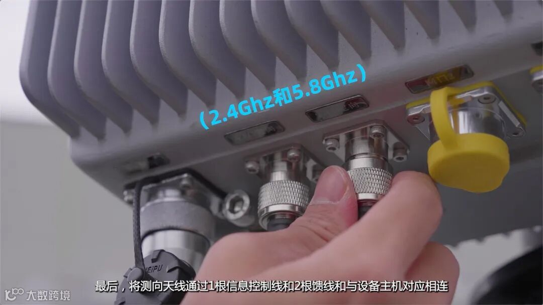 最后,将测向天线通过1根信息控制线和2根馈线(2.4Ghz和5.8Ghz)和与设备主机对应相连
