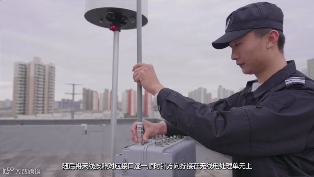 随后,将测向天线底部插入立柱顶端,确保天线组件与立柱顶部紧固无松动