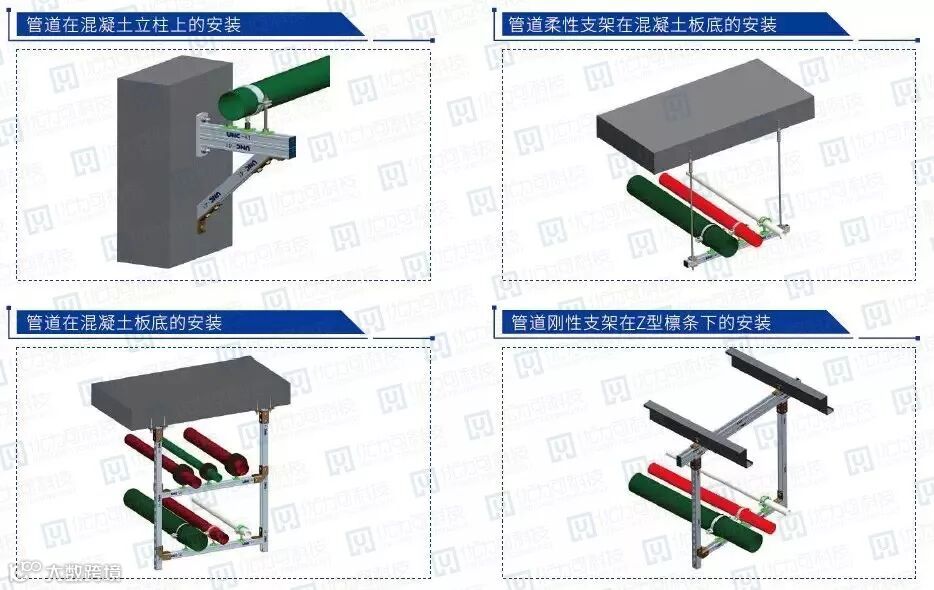 成品支吊架系统是用于悬吊与支撑设备、管线等设施的承重系统,其所有构件都是在工厂预制生产,施工现场直接安装施工。装配式建筑管线支吊架可以承载建筑内机电管线的各种动静态荷载,保证建筑内机电系统的安全。