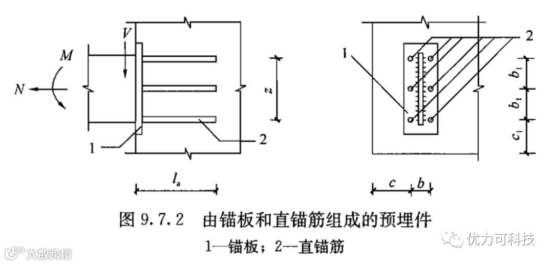▲图2 由锚板和直锚筋组成的预埋件示意图(摘自GB50010-2010[2])