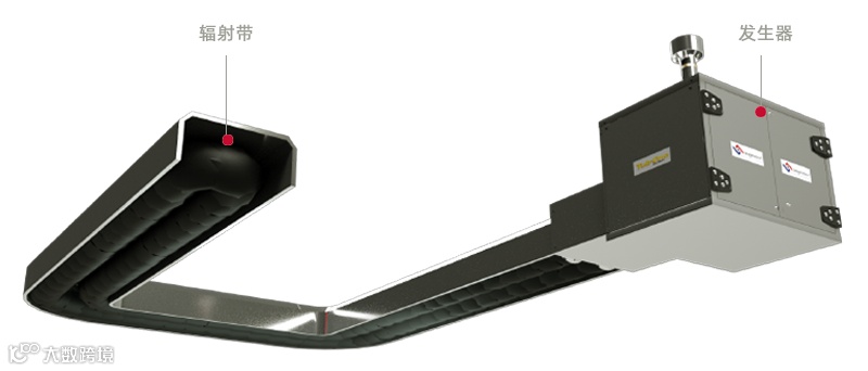 IMPRESIND(伊普赛德)燃气辐射采暖系统主要由发生器和辐射带组成。发生器燃烧天然气,产生的热流体在负压离心风机的驱动下在渗铝合金钢材质的辐射管中流动,激发红外线,将辐射热直接作用于采暖区域内的物体和人体之上。辐射管内部的热流体在热交换结束后,一部分产物将经过预混室被用于烟气再循环,供热效率大大提升,充分利用能源。而另一部分则直接排到室外。两次加热从而达到节能、环保,降低运行成本的目的,综合节约能源可达30%~50%。