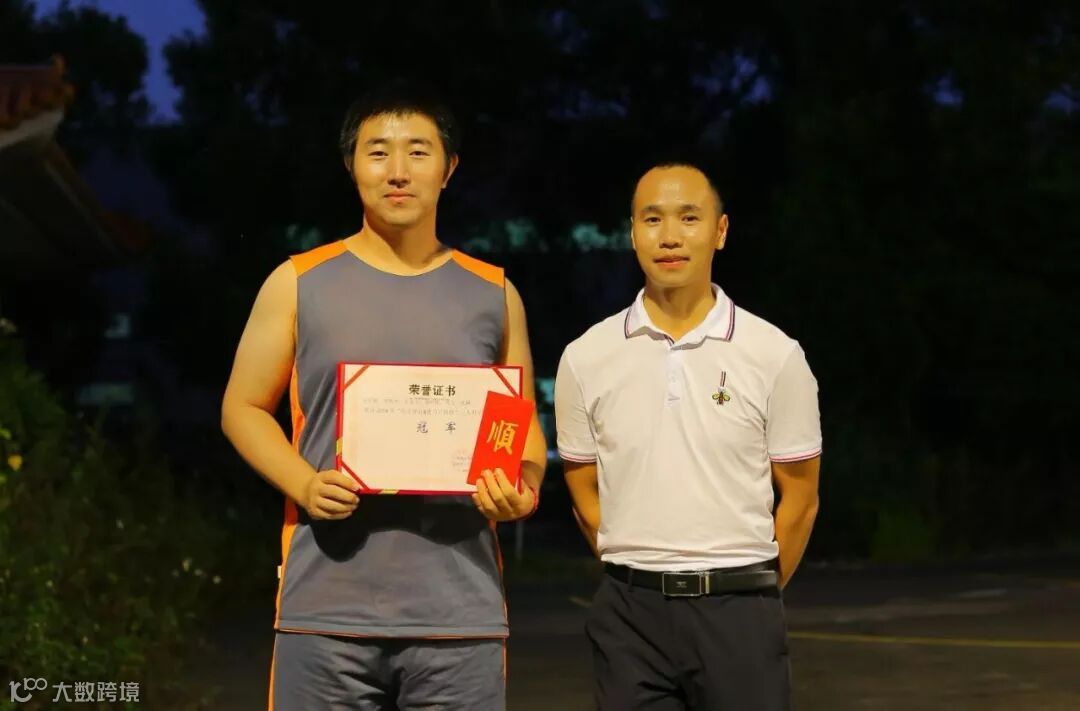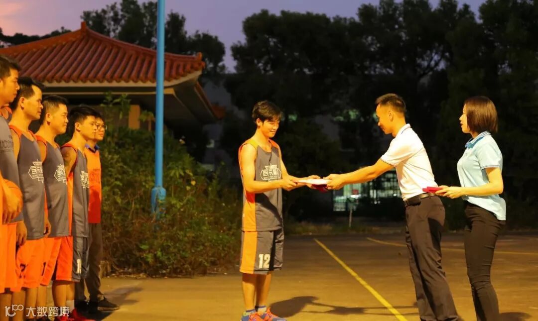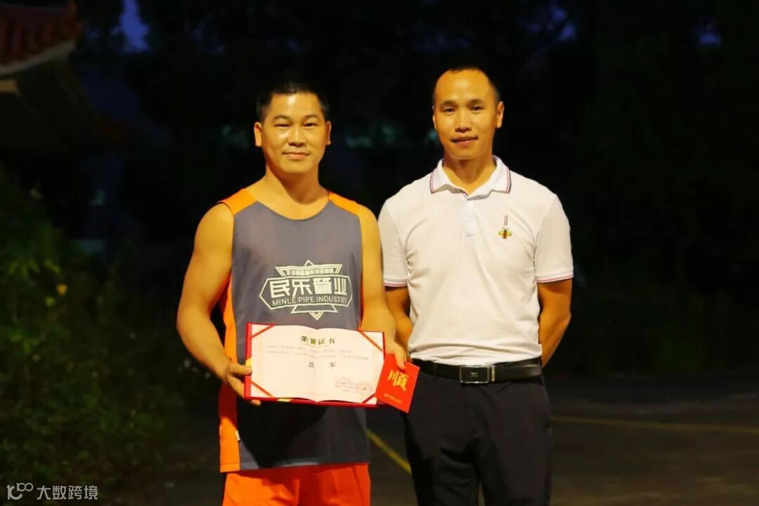 ▲优力可党支部书记为最后获胜的冠军、亚军、季军三支队伍颁发荣誉及鼓励金并合影留念