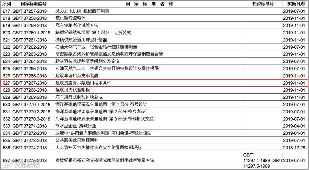 《建筑抗震支吊架通用技术条件》实施日期