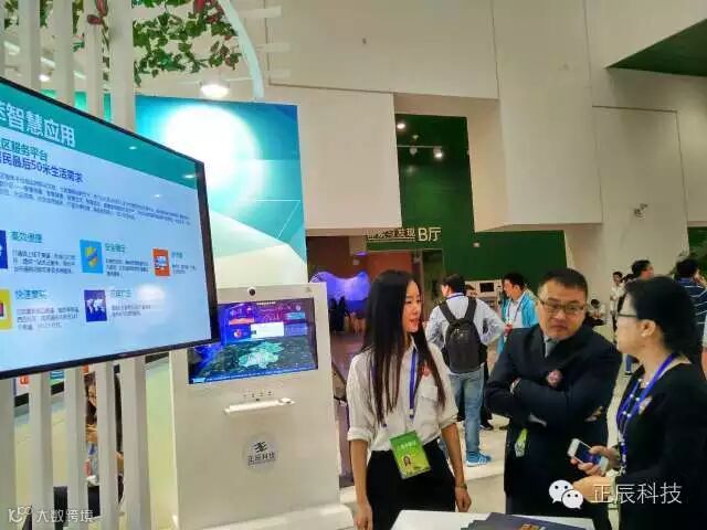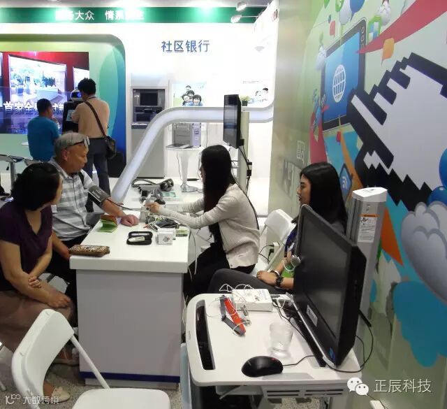 正辰科技此次参展的主题为“荟萃智慧应用 构筑美好生活”,展区位于B区中国科技馆二层,面积30平方米,以绿色为主色调,突出智慧、生活、健康的特色。正辰科技这次带来的产品,是以移动互联和大数据等新兴技术为支撑,以“解决居民最后50米生活需求”为宗旨,全新推出的“智慧社区服务平台”。展区布置了系列健康检测设备和多点触控大屏机,运用影像科技、多媒体、移动互联网等技术手段,供现场嘉宾和观众体验,展示互联网智慧应用给社区生活带来的巨大变化。