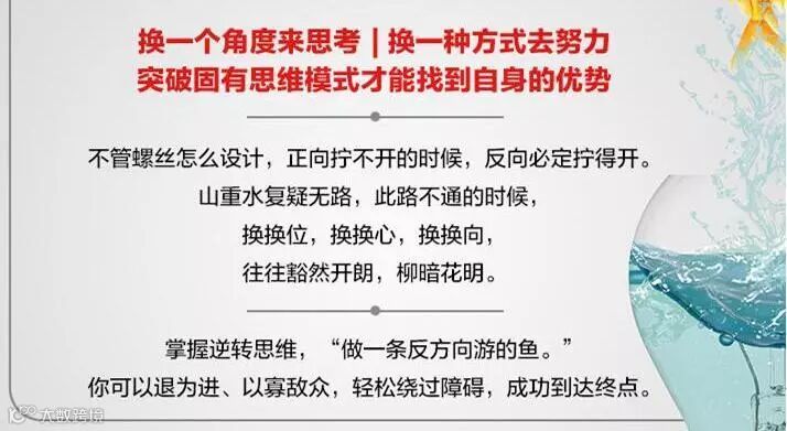 一个人的逆转思维能力,在一定程度上决定了他成功的几率,逆转思维能力越强,成功的几率就越高。