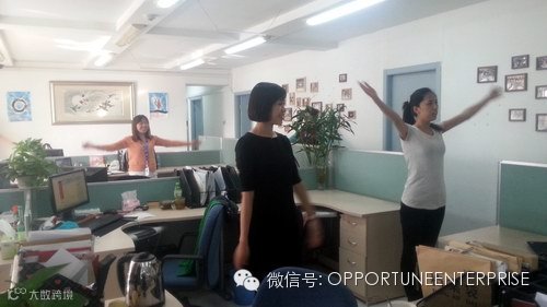 正辰科技秉着快乐工作快乐生活 提升正辰员工身体机能 劳逸结合,促进团队协作,提倡正辰文化价值观。繁荣公司文化,锻炼员工身体,激发爱我正辰的热情,共同建设阳光健康,积极向上的正辰家园。正辰企业特意为员工安排了每周两次下午茶后的课间操活动,受到了大家的一致好评。让我们共同成长,共同进步!