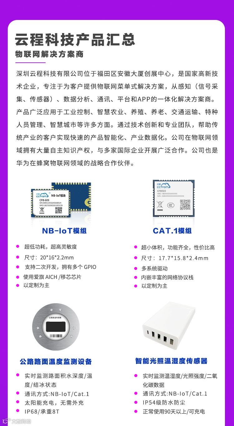 更多信息,敬请访问云程科技官网:http://www.ccfrom.com,关注微信公众号“云程科技NBIoT”或发送邮件至support@ccfrom.com。