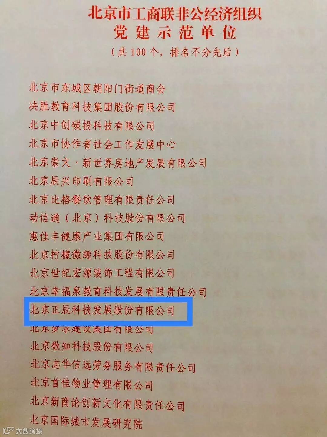 经北京市西城区工商联、商协会推荐,北京市工商联研究决定,北京正辰科技发展股份有限公司以注重服务凝聚,创新的工作方式脱颖而出,被评为非公有制经济组织党建示范单位。
