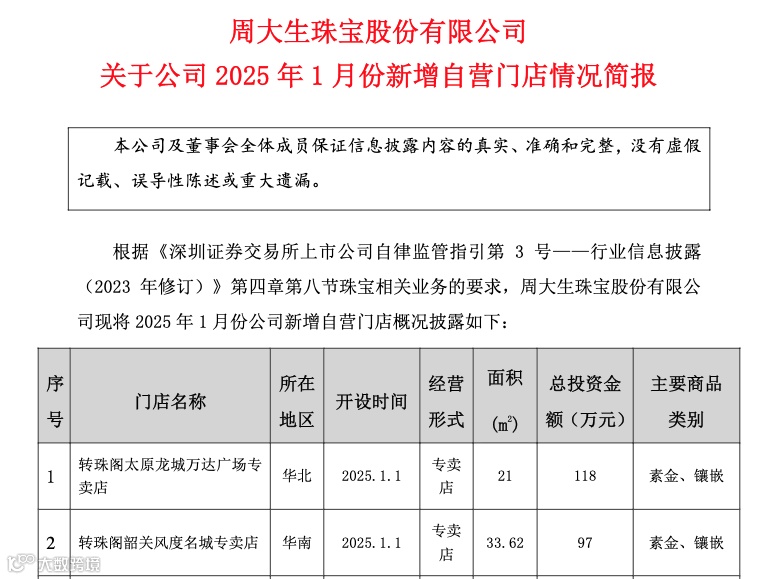 日前,周大生(002867.SZ)发布公告,2025年1月份公司新增自营门店44家。其中有30家门店皆为其旗下子品牌“转珠阁”,这是周大生首次对该品牌门店情况进行披露。转珠阁30家新开门店分为联营专柜与专卖店,分布在华东、华南、华北等7个地区,其中,华东地区开店数量最多,共8家门店,主要集中在南京、常州、无锡、上海等城市。