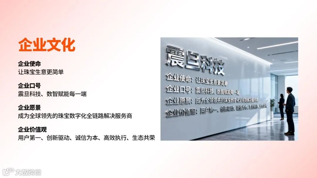 杭州震旦科技有限公司(简称“震旦科技”)成立于2018年,是一家专注黄金珠宝行业数字化转型升级,集珠宝文化传播、数字化交易服务、供应链整合于一体的科技企业。