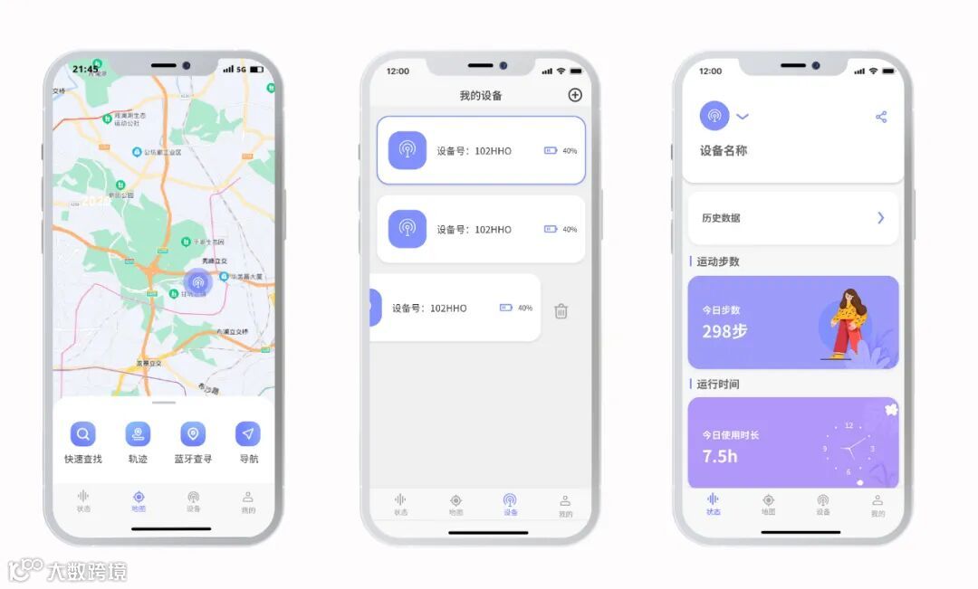 APP页面功能简洁明了方便用户查看设备的运行时间及运行轨迹。