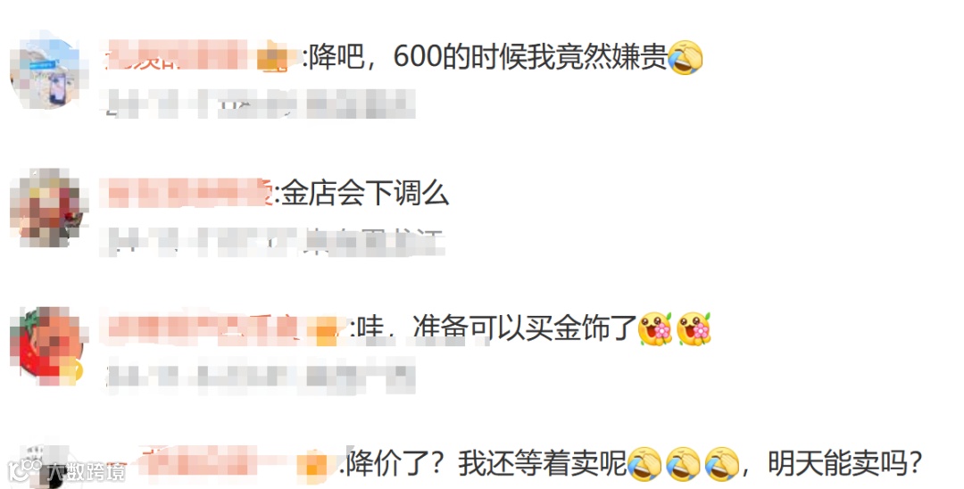 对于金价近期跳水,有网友说“降价了?我还等着卖呢”,也有人说“准备入手了”。