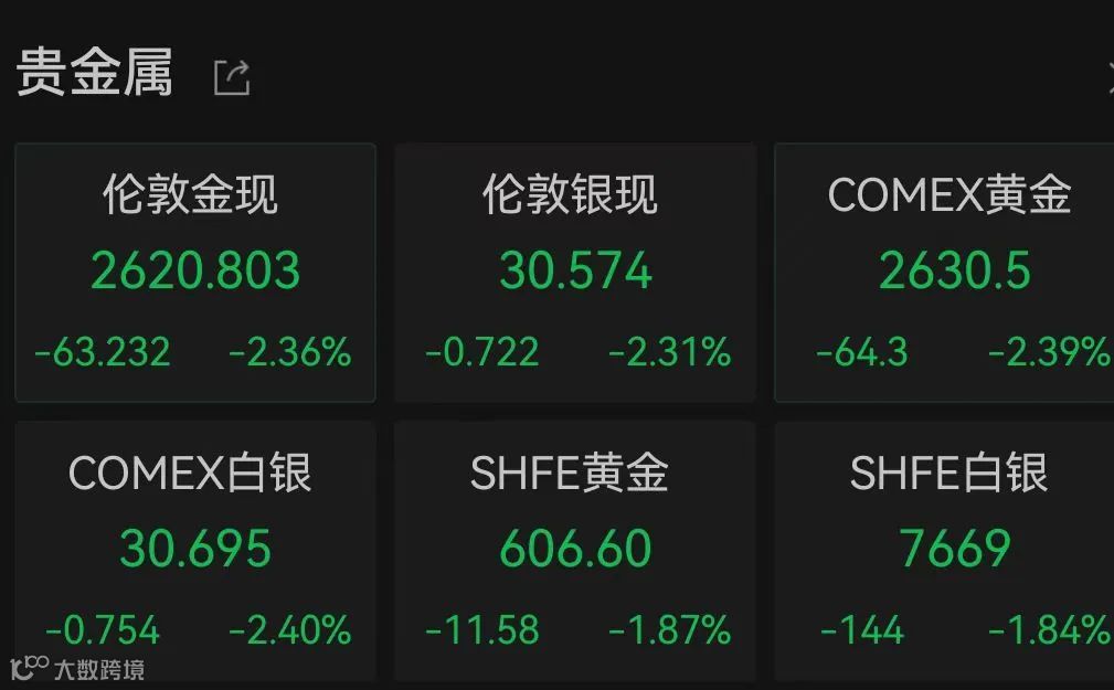 受美元持续走强等因素影响,金价周一下跌超2%,现货黄金下跌2.4%,至每盎司2617.96美元。美国黄金期货收跌2.9%,至每盎司2617.70美元。
