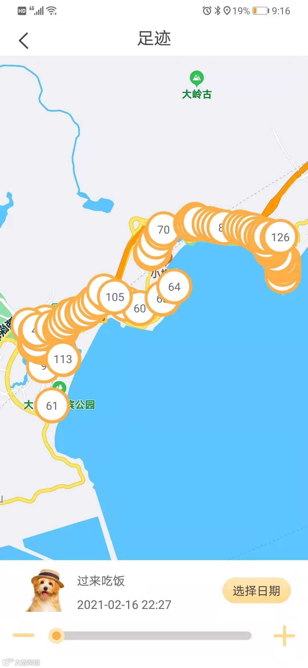 为了方便记录宠物运动轨迹,我们的产品还有轨迹查询功能,打开“嘻嘻狗”APP就能查看宠物去过的地方,一目了然。