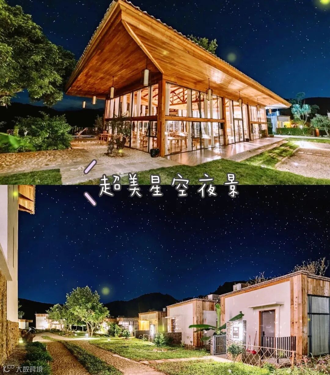 民宿房间采用玻璃落地窗,在房间内就能看到大自然的风景和美丽的夜景。这个民宿是可以带小型犬宠物的,晚上和宠物一起漫步在庄园的小道,白天可以让宠物和蝴蝶玩耍。民宿还有配套的烧烤场、餐吧、无边泳池和各种儿童设施,无论是家庭旅游、公司团建还是朋友聚会都是非常合适。