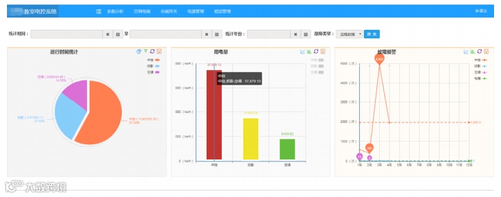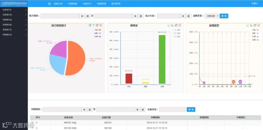在数据分析界面,用户可以按照时间、数据、设备或记录类别等多维度查看设备运行记录,并可以将报表导出分析,为系统设备运行趋势提供参考依据。