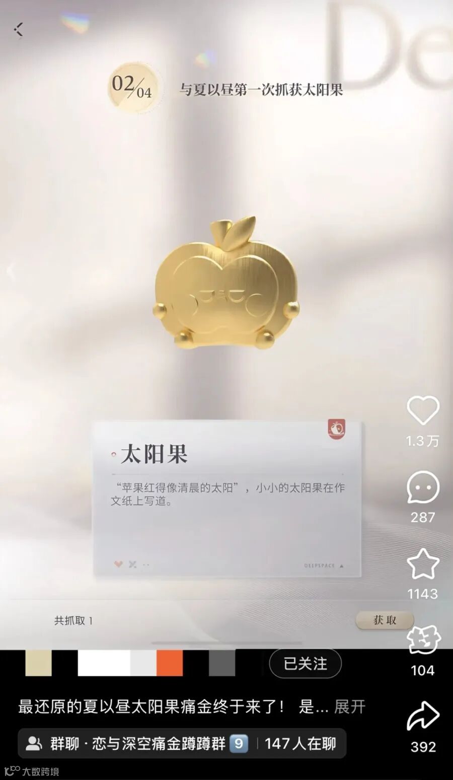 部分开通小红书账号的品牌柜员,主动将产品形象与热门IP相关联,尽管这些产品并不是官方联名,只是因为外观能给IP粉丝带来“陪伴”或“代餐”的体验。比如,小羊钟情苹果元素,就是因为它和游戏《恋与深空》中的人气角色夏以昼有关,而这也已经成为商家宣传的卖点。