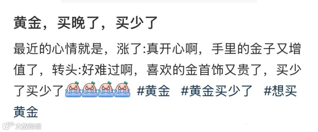 黄金持续大涨,不少网友在社交平台表示:后悔买少了!