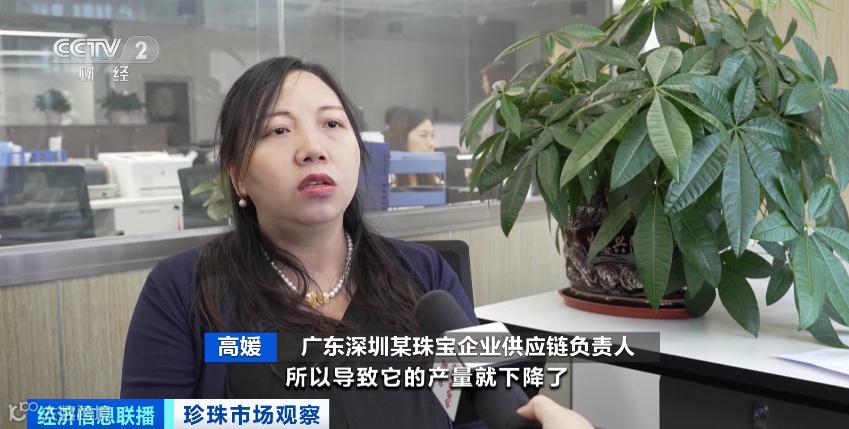 广东深圳某珠宝企业供应链负责人 高媛:像淡水珍珠,在国内的养殖面积在缩减,在国外近些年母贝珍珠大面积死亡,所以导致产量下降。