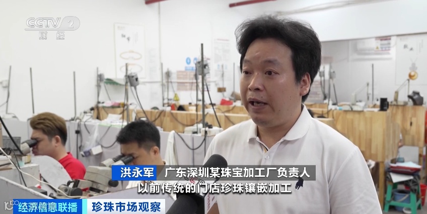 广东深圳某珠宝加工厂负责人 洪永军:我做镶嵌加工厂十几年,第一次遇上珍珠镶嵌加工订单这么火爆的情况。以前传统的门店珍珠镶嵌加工,给我们的出货周期可能是半个月、二十天。现在直播电商带货,他们要求的速度是一个星期甚至五天。