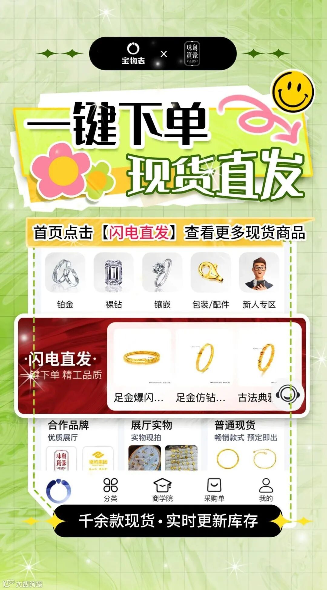引入行业龙头批发企业,上千款源头尖货直供。从选货,入库,拣配,发货,每一个环节都严格把控,每一件货品都支持专业质检机构验真、检测。高标准造就高品质。门店必备传统普货、轻克重引流硬金、小红书爆款古法等全品类统统囊括,满足门店和您门店客户的多重采购需求。足不出户,轻松购齐。