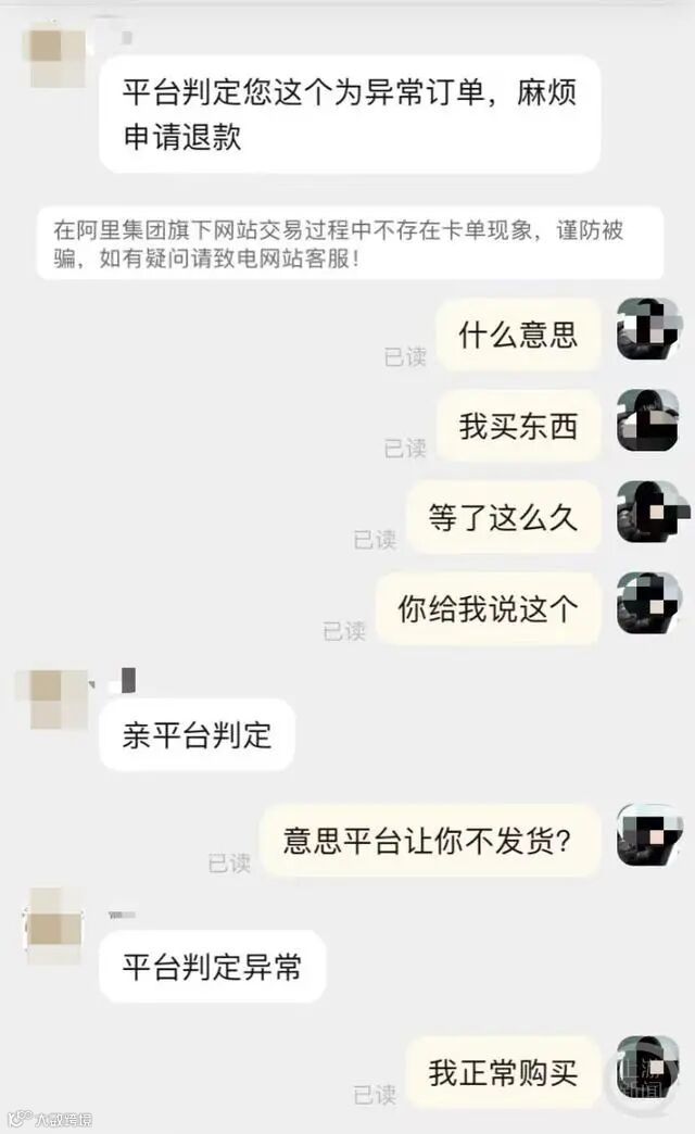 16日上午,广东网友叶女士(化名)告诉记者,3月29日,自己在淘宝店铺“乾X金银”购买了100克黄金,共付款51700元。商品截图显示,这些黄金属于预售,将在4月12日13点44分前发货。当时店铺客服表示,会在规定时间内发货。尽管后来叶女士多次催促,但在发货时间已过的情况下,该店铺一直没有发货。叶女士再次联系上商家,店铺客服却表示:“亲,平台判定您这个为异常订单,麻烦申请退款。”对此叶女士表示不解:“我就是正常下单,怎么就成了异常订单?”16日,她再次联系上对方,并表示自己已经向市监局和淘宝客服投诉,但该店铺客服仍然表示无法发货,“平台判定是异常单。”客服发来的截图显示:“异常订单(付款后批量、频繁发起退款的异常行为),不计入消费体验指标,投诉免责(该笔订单支持不发货,若卖家已发起延迟发货投诉,且在处理中,您可拒绝投诉,投诉将不成立)。”时间为4月1日晚上9点27分。