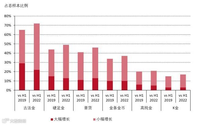 根据世界黄金协会发布的《2023年中国金饰零售市场洞察》报告表明,在黄金产品销售中,古法金,普货和硬足金排名前三,并且古法金、硬足金为门店提供了核心利润。同时,市场的轻量化趋势愈发显著,10克以下及2000元以下金饰受到市场关注。在此背景下,硬足金产品在市场中的竞争力更显突出。
