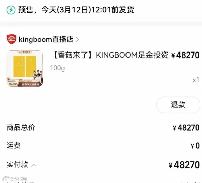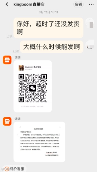 对此,南都记者咨询了Kingboom品牌的客服,尚未得到回应。“香菇来了”直播间的客服向南都记者回应称,“这边对此情况正在进行调查,核实清楚后会给用户解决的”。