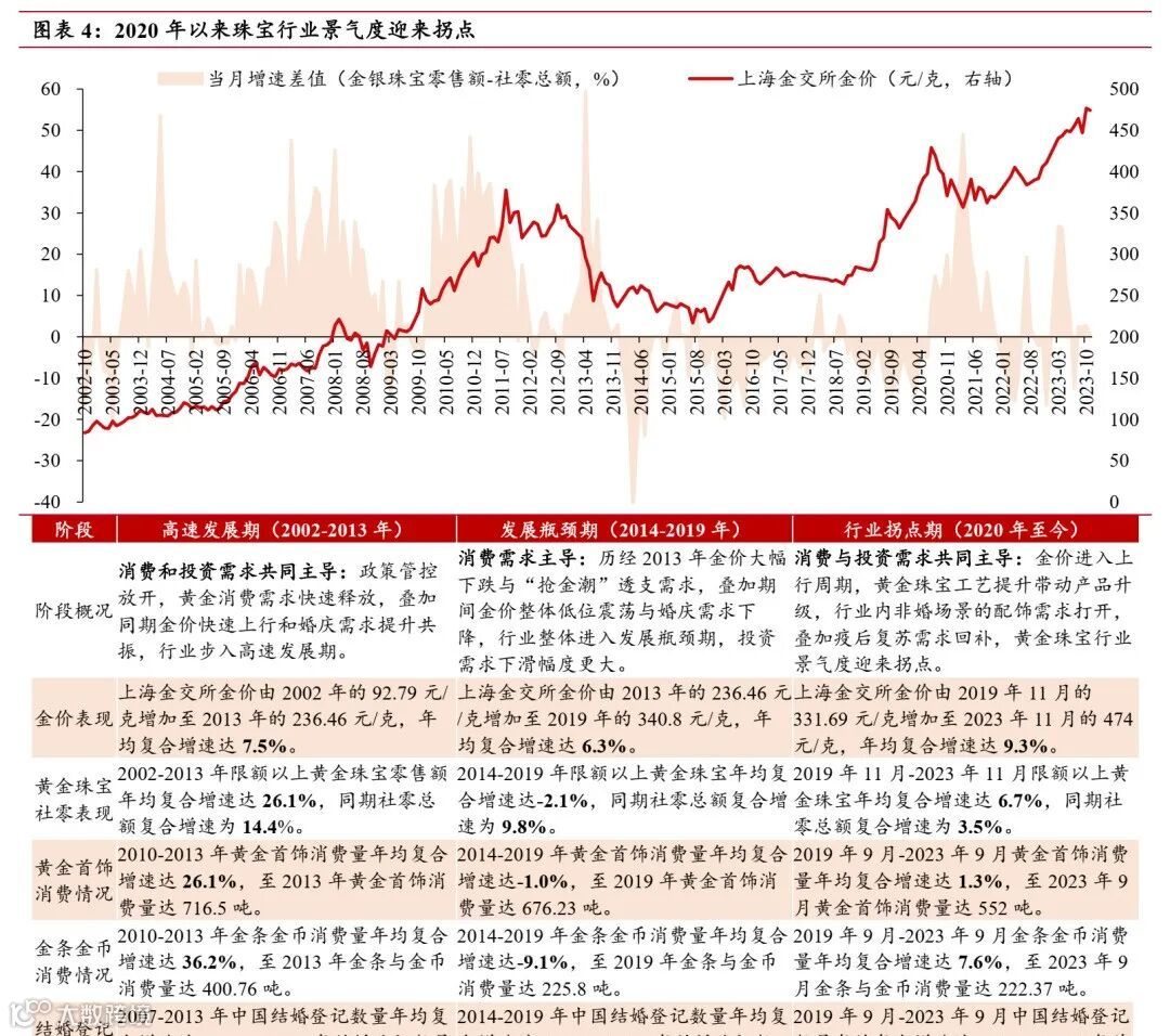 展望2024年,金价上行预期+黄金珠宝工艺升级驱动配饰等非婚庆场景需求+元旦春节假期行业迎来传统旺季,短期景气度有望延续。