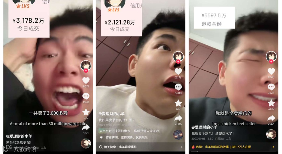 看着粉丝数量不断增加,他决定开始直播带货。在直播间中,畅销商品是一款去骨鸡爪。经过7天的带货,总销售额达到1亿元,然而相应的退款也高达1亿元。