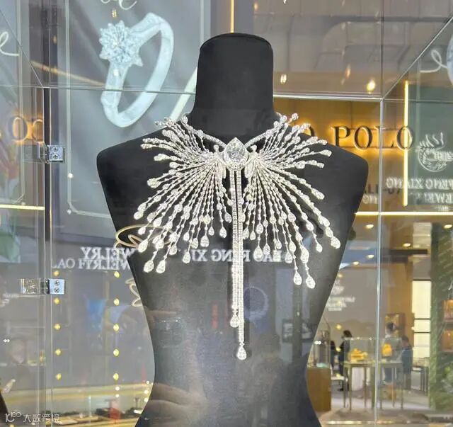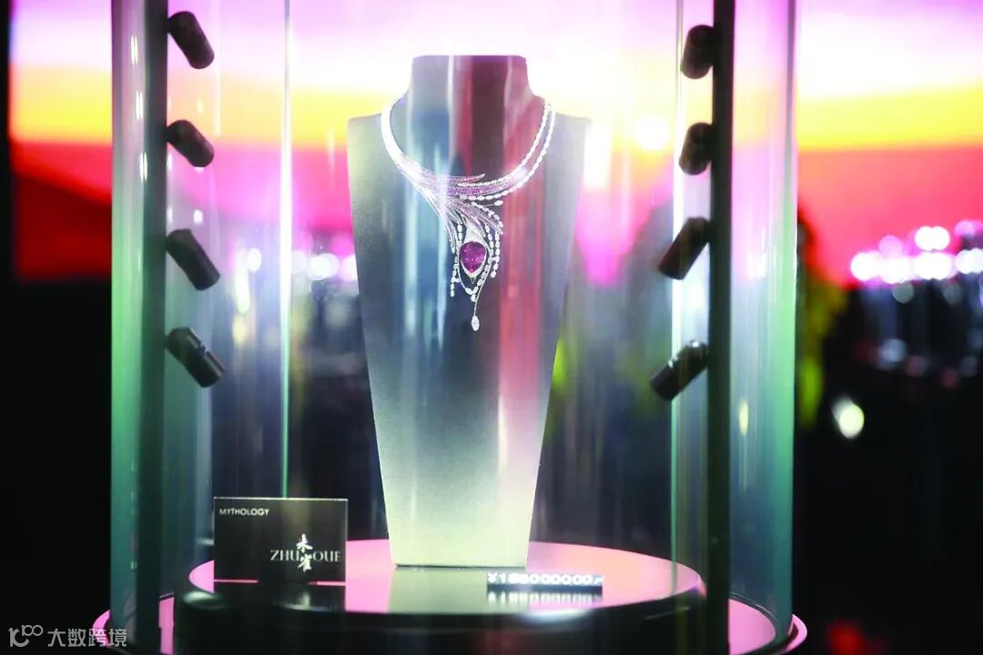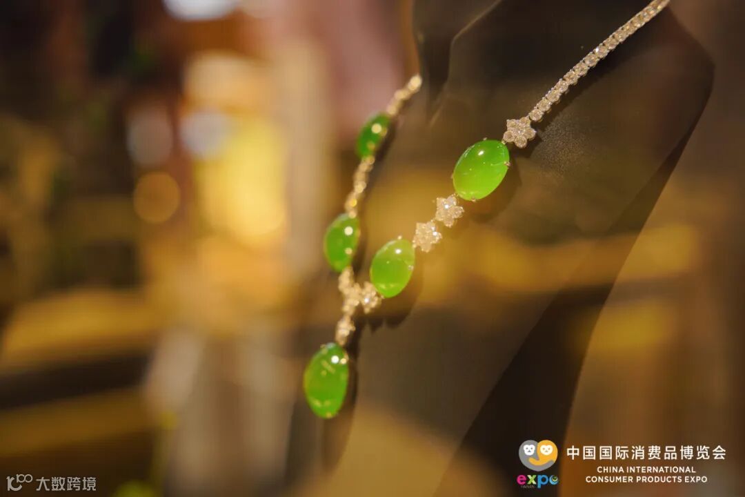 但相比之下,七彩云南翡翠带来消博会现场的翡翠饰品“绝代风华”吸睛程度或许更甚,其价格达到3亿元人民币之多。