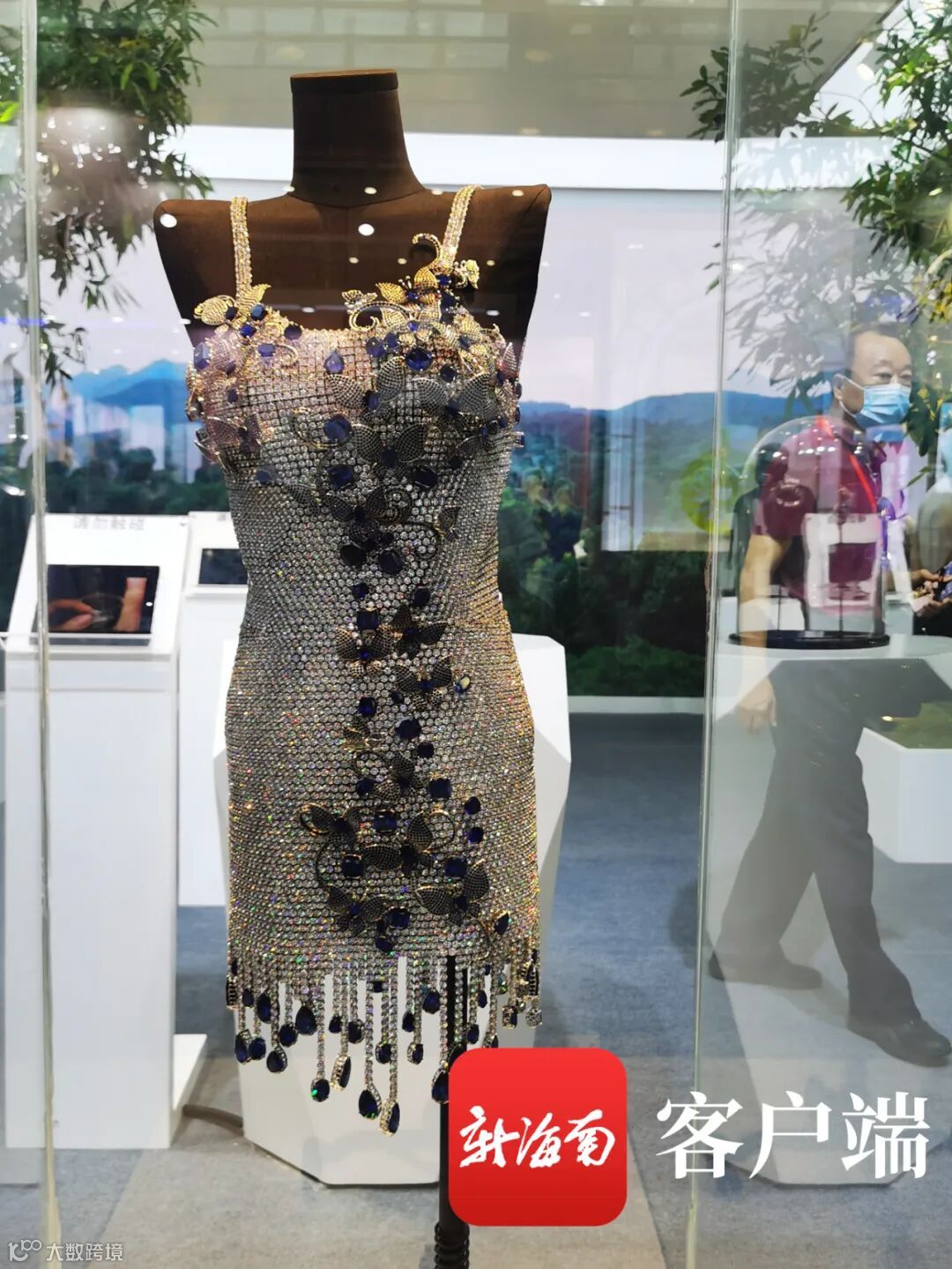 环保珠宝品牌高纳仕展出了“矿工的眼泪”,该展品耗时两年制作完成,整件衣服镶嵌19650粒钻,全手工金属扣链,无需一针一线却精美绝伦。