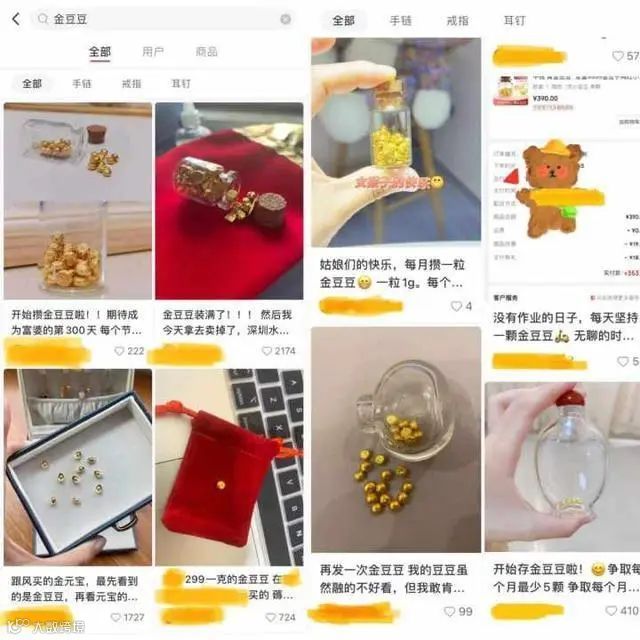 据央视财经,金豆豆重量约在1克左右,普遍售价在400至600元之间。在电商平台上搜索,不少商家都在售卖,有的商家月销售量近万件,还有不少买家晒出了自己的攒豆计划。
