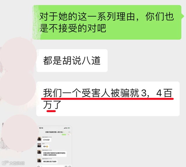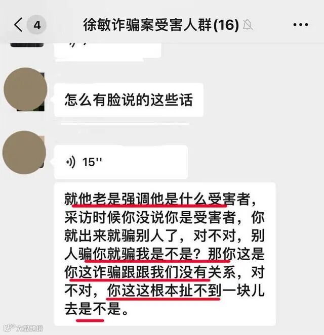 “我在加入这个同行微信群的时候,徐敏就已经在群里了,我们加了微信,能看到朋友圈。”