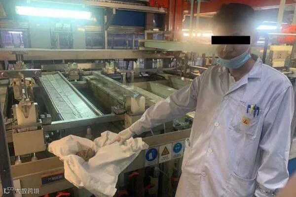 被害公司通过调取监控发现,有员工频频往金线流水线旁的过滤槽添加不明物体后,打开含金溶液的阀门,让溶液通过过滤槽,过了2个小时左右会先关闭阀门,然后取出不明物体并用手套包裹后带走。
