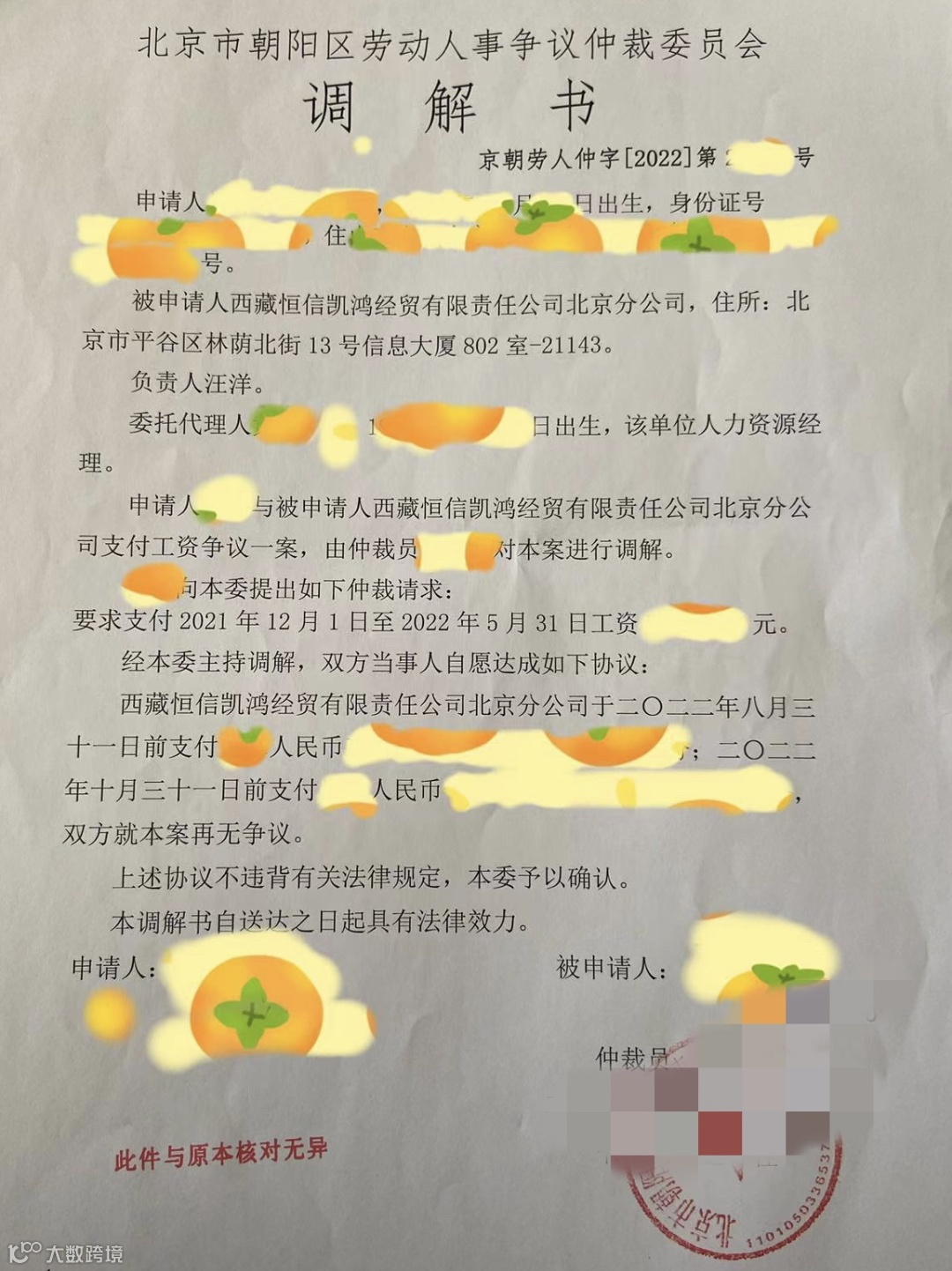 根据调解书约定,恒信玺利应当在2022年8月31日前发放2021年12月至2022年4月的欠薪,于10月底发放2022年5月的工资。目前,邹颖只收到了8月底发放的那笔欠薪,其余部分仍未收到。