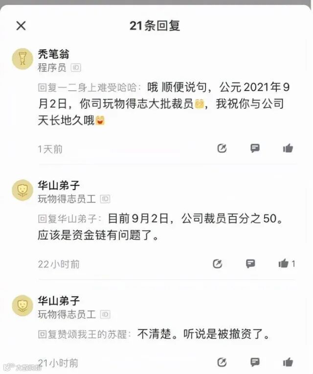 网经社注:图为玩物得志员工在某社交平台讨论裁员事宜 由爆料者提供
