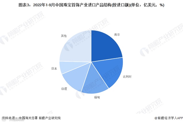 3、进口来源地:南非为中国珠宝首饰产业产品最大来源地