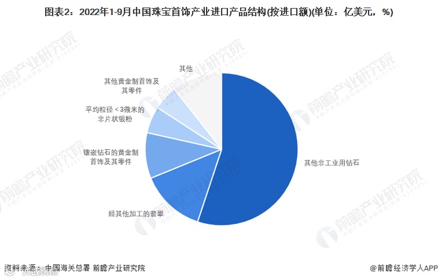 根据上海海关所属钻石交易所海关的数据显示,2021年,通过上海钻石交易所进口的钻石货值超300亿元人民币,创历史新高。2022年1-9月,中国珠宝首饰产业相关产品进口总额将近120亿美元。