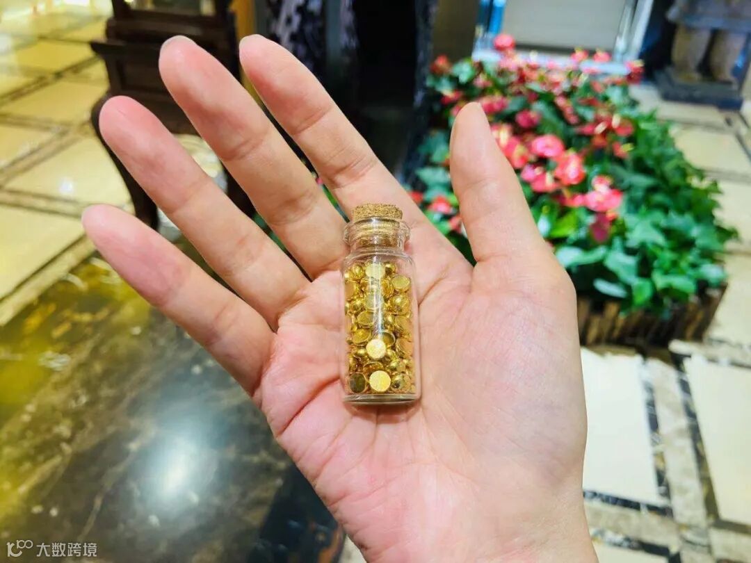 小金豆,顾名思义就是以克来计算售卖的黄金豆,售价低体积小,积少成多之后既可以保值也可以到店铺打造成首饰。金豆产品早在2015年左右就在水贝出现,行里的人管这类产品叫“按克卖的货”。金豆在造型上手工要求不高,以至于商家的利润不高,但跑起量来,利润也很可观。