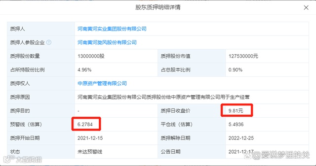 黄河旋风的股价从2021年初开始,最高涨了近6倍。期间随着历史质押的股份到期,实控人需要解压再重新质押,所以实控人目前有几笔质押价格较高。