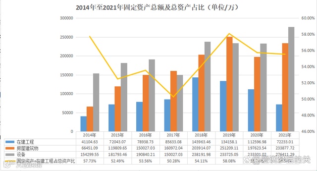 2014年固定资产+在建工程共28.68亿,这些年减去折旧、土地收储、减值十多个亿后,2021年固定资产+在建资产59.43亿,占总资产55.54%。