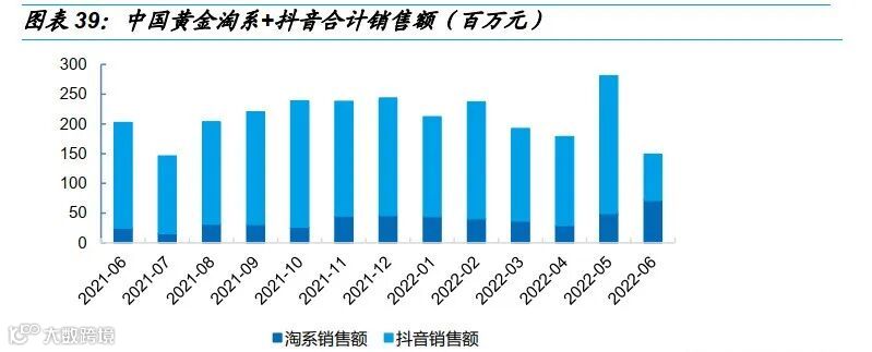 中国黄金6月淘系+抖音合计销售额1.49亿元,同降26%,主要系抖音销售额波动。