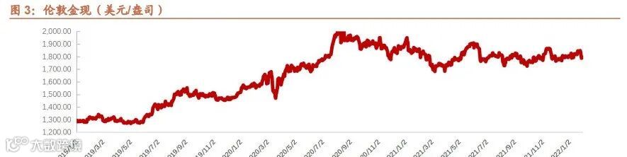 去年上半年,金价先跌后涨,2021年1月4日是去年金价最高点1942.79美元/盎司,一季度金价大幅下行,二季度金价转跌为涨,上行趋势一直维持至6月上旬后又开始回落,去年自8月开始金价始终处于相对低位震荡。今年以来金价依旧处于低位震荡状态。