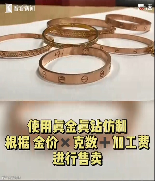 2020年10月22日,公安机关当场查获印有卡地亚标识的首饰与包装盒,以及用于制作假冒卡地亚首饰的黄金1370克。