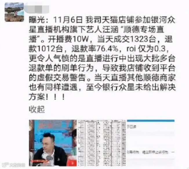 “轰动一时”的案例包括:李湘直播卖貂,80万的坑位费,却没卖出去一件;小沈阳直播卖酒,1.5万的坑位费却只卖了20多单,第二天还退了16单;汪涵直播带货当天成交1323台,退款1012台,退款率高达76.4%;叶一茜直播带货90万人观看,成交额仅2000元;郑爽生日直播,却突然在直播时情绪崩溃,一度导致直播无法进行……